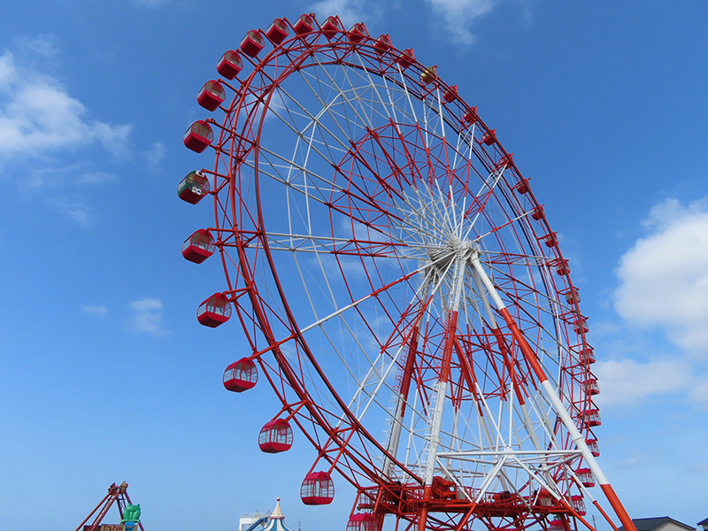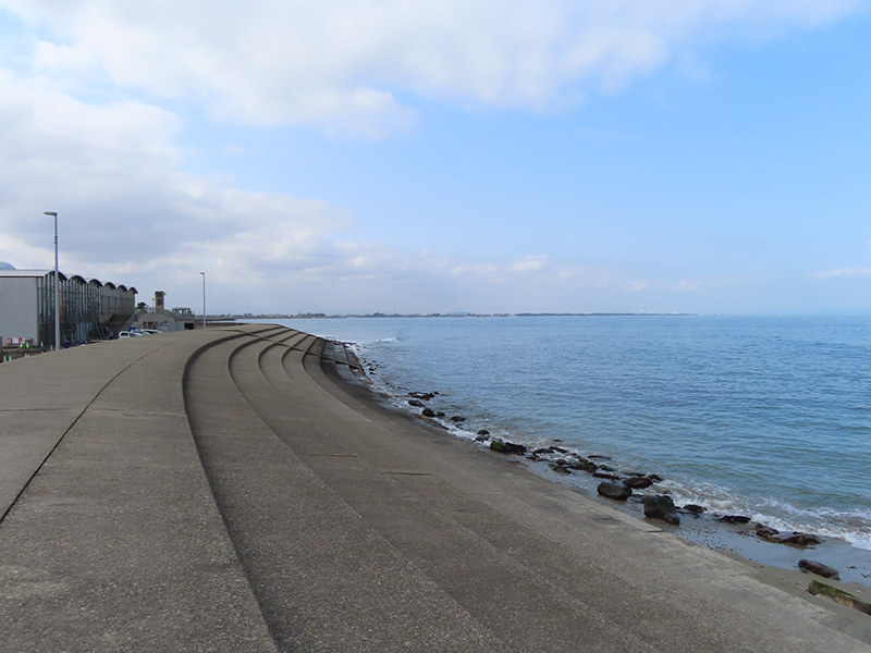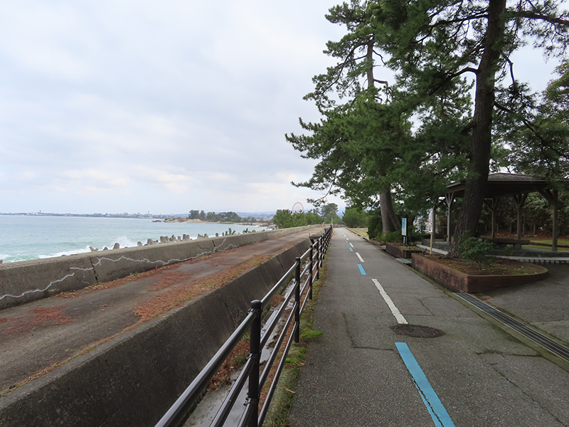 さらに、海沿いを北東へ進みます。遠くに観覧車が見えてきました。