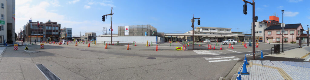 あいの風とやま鉄道 魚津駅。駅前は絶賛工事中でした。