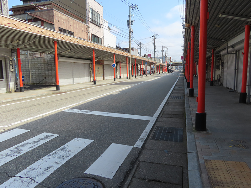 こちらは商店街(の跡地)。赤い柱がなぜか哀愁を誘います。